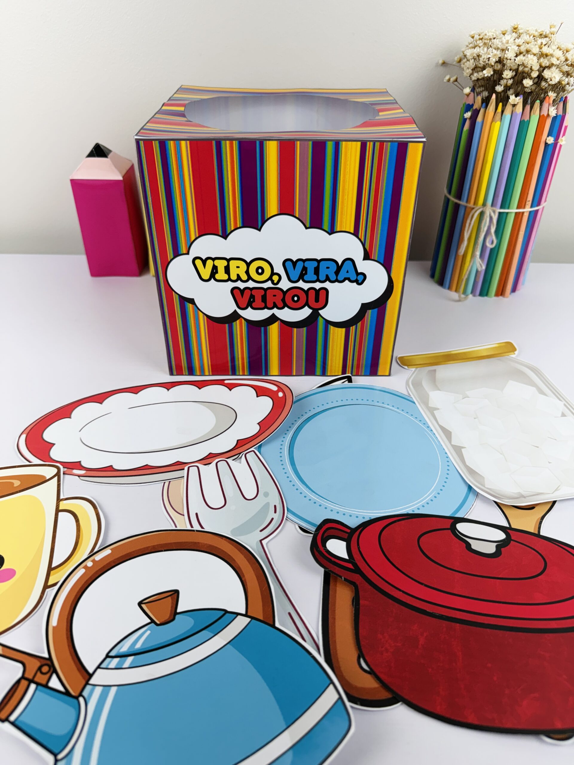 O “Viro, Vira, Virou” é um material criativo em formato de caixinha