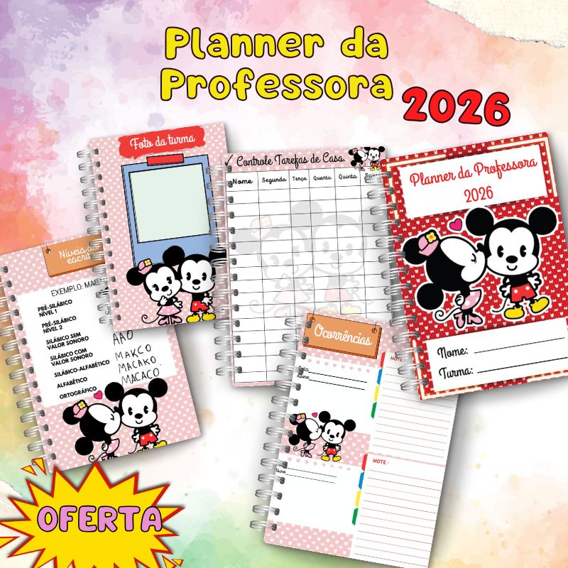 Este ítem Planner da Professora 2026 minnie e mickey para impressão